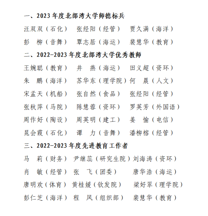 近日,在第40个教师节到来之际,学校完成了校级师德标兵、优秀教师、优秀教育工作者的评选活动。汪双双等6名教师荣获“2023年度bw必威西汉姆联官方网站师德标兵”荣誉称号,王婉聪等18名教师荣获“2022-2023年度bw必威西汉姆联官方网站优秀教师”荣誉称号,马莉等12名同志荣获“2022-2023年度先进教育工作者”荣誉称号。34名获得校级表彰的教师,在他们身上集中体现了广大教师兢兢业业、任劳任怨、甘于奉献、勇于开拓的优秀品质。今后,学校党委教师工作部、...