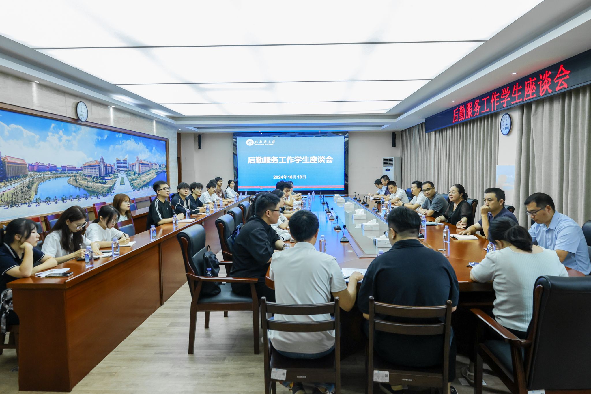 10月18日上午,校党委常委、副校长马秀明在办公楼523会议室主持召开后勤服务工作学生座谈会。来自18个学院及学生社团的学生代表,以及学工处、基建处、后勤保障处、校团委、网络与教育技术中心等部门负责人参加座谈。会上,同学们畅所欲言,积极为学校后勤服务工作质量的提升提出意见建议。马秀明认真倾听并记录,各部门负责人对相关问题给予详细解答。马秀明表示,学校始终坚持以学生为中心,打造优良的学习生活环境,提供优质的后勤保障服务,...