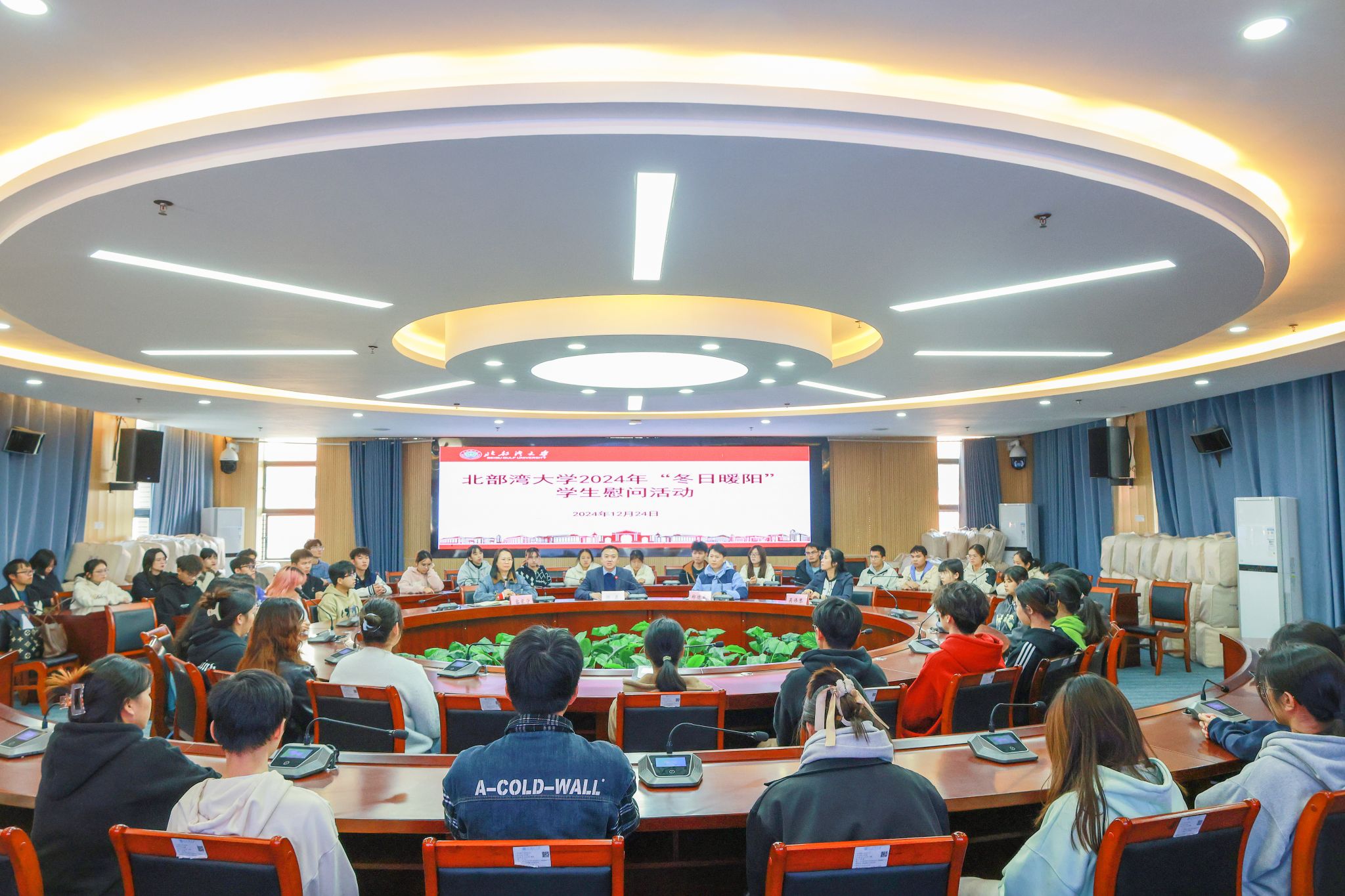 12月24日,学校在国际交流中心222会议室举行2024年“冬日暖阳”学生代表慰问座谈会。校党委副书记陈磊与来自17个学院的99名学生代表面对面交流,倾听学生心声,了解学生需求,助力学生成长成才。座谈中,学生代表积极发言,结合自身学习实际与未来规划,从教育教学、生活服务、基础设施、校园文化、成长就业等多个方面进行交流互动,谈感受、说打算、述困惑、提建议,为学校高质量发展建言献策。陈磊认真倾听同学们的需求与建议,不时询问细节,...