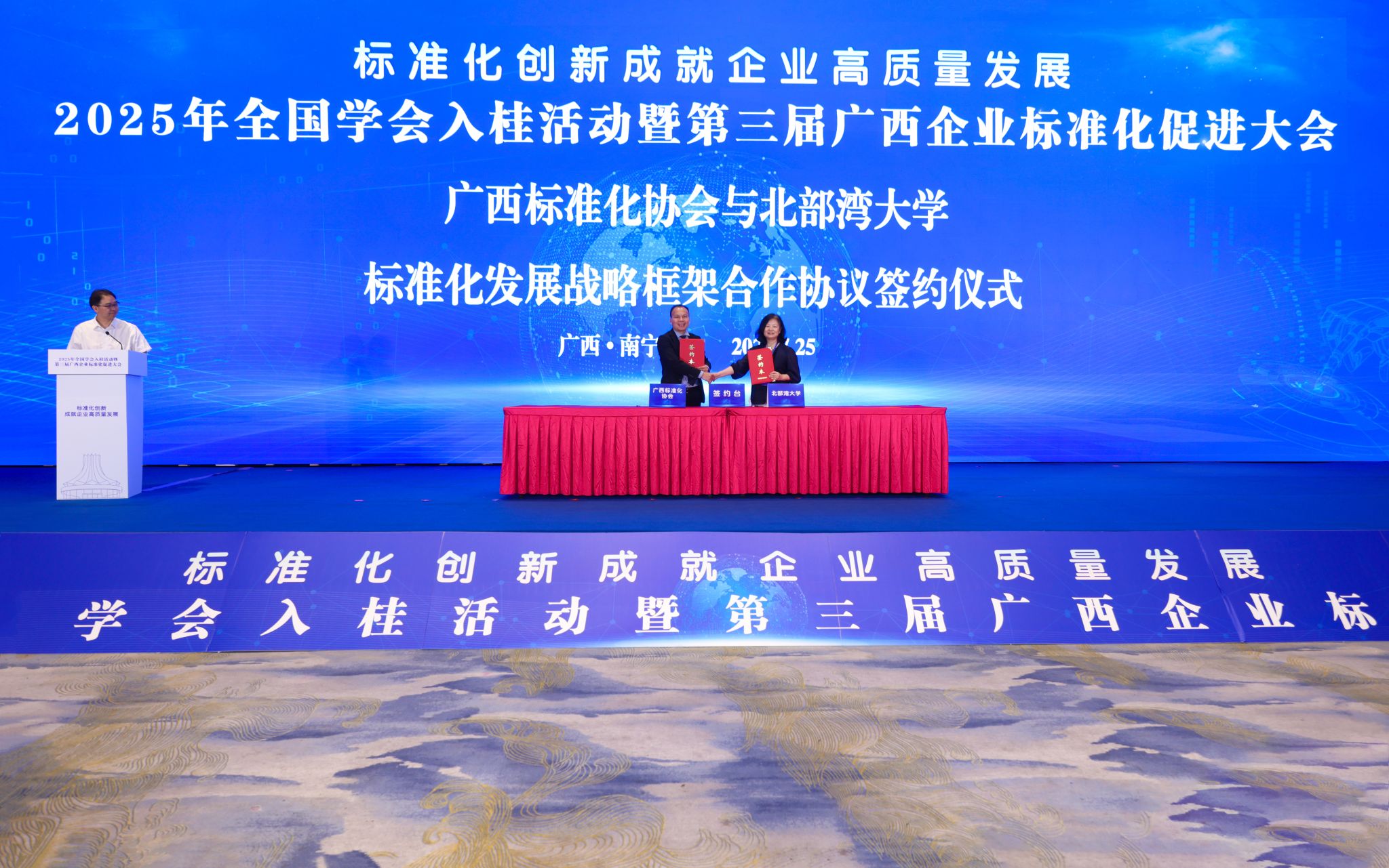 7月25日,2025年全国学会入桂活动暨第三届广西企业标准化促进大会在南宁举办。学校党委常委、副校长陈丹受邀出席大会,并代表学校与广西标准化协会签署校会发展战略框架合作协议,推动必威西汉姆联在深化应用型大学内涵建设、服务地方经济社会高质量发展方面迈出坚实一步。双方签署的合作协议将为必威西汉姆联高水平应用型大学建设、服务广西经济社会高质量发展提供重要平台,并为科研反哺教学实践提供有力支撑。同时,学校也将依托该协议完善“产教融合、...