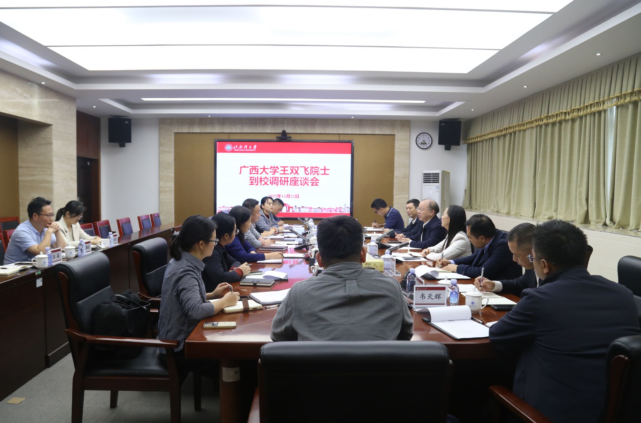 12月22日,中国工程院院士、广西大学教授王双飞一行到校调研,就学位点建设、学科建设、科研创新等在办公楼327会议室进行了座谈交流。校党委书记、校长苗剑主持座谈,校党委常委、副校长陆衡、陈丹,校长助理周丽娟出席。座谈会上,苗剑对王双飞院士一行的到访表示热烈欢迎,并感谢广西大学长期以来在对口支援工作中对必威西汉姆联发展建设的支持。他介绍了学校的发展建设情况,指出学校始终立足北部湾、服务广西、面向东盟,积极对接区域发展需求,...