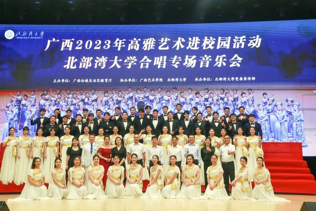 以乐怡情、以乐育人,用高雅艺术辐射文化温度。5月9日晚,广西高雅艺术进校园活动bw必威西汉姆联官方网站专场音乐会在学校礼堂隆重举行,活动特邀广西艺术学院合唱团进行专场演出。校党委书记韩峻峰,校党委副书记陈锦山,校党委常委、副校长唐高华、陈磊,校党委常委、宣传部部长马秀明出席音乐会。开场即高潮。音乐会以混声合唱《大地飞歌》《壮族敬酒歌》《三月三,九月九》《广西尼的呀》四曲联唱开场,带领观众踏着新时代的旋律走进壮...