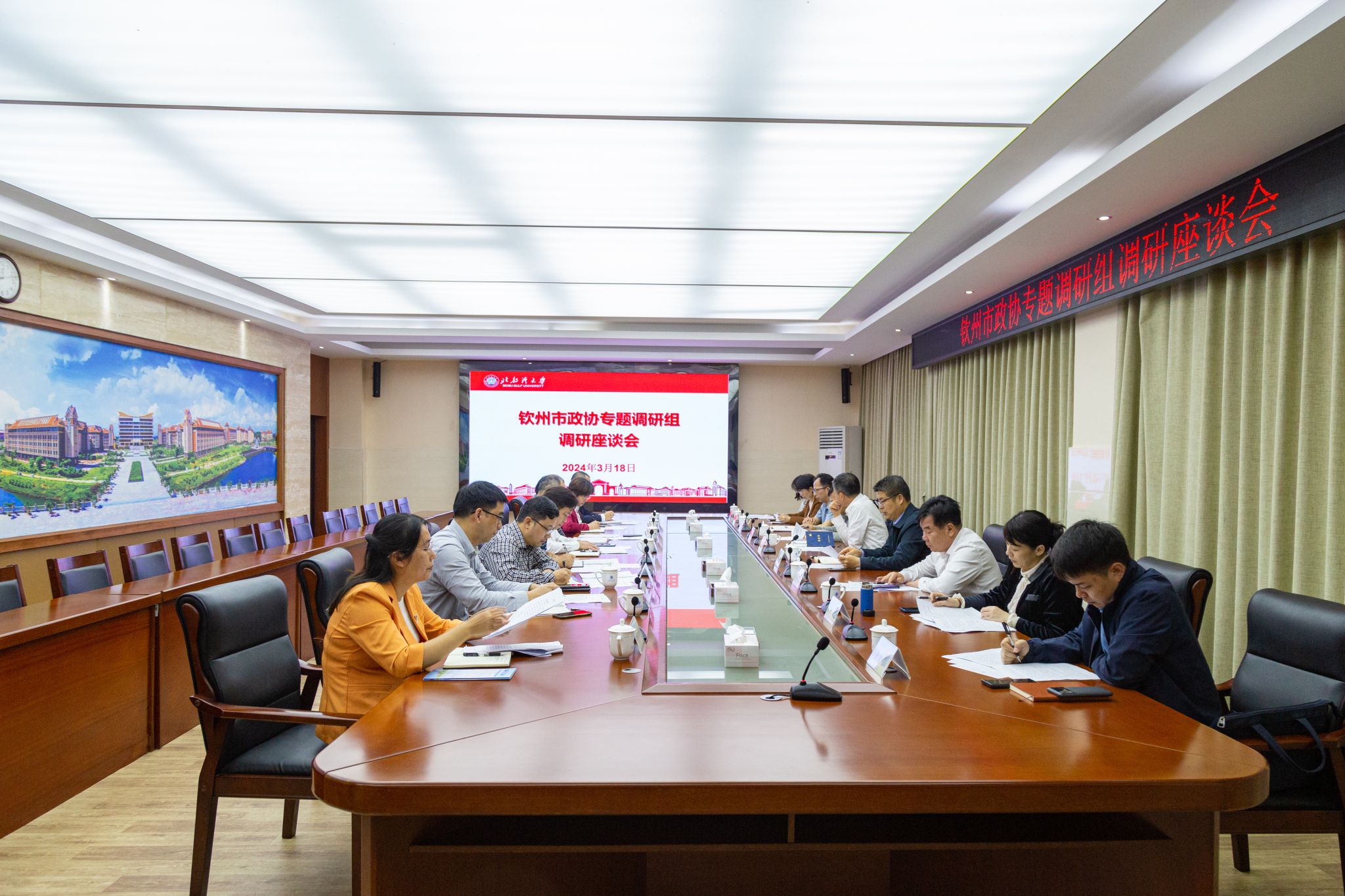 3月18日,钦州市政协副主席王文远,市政协副主席、九三学社钦州市委主委陈正理一行到学校开展专题调研。党委副书记唐高华陪同调研座谈。座谈会上,学校发展规划处处长刘琼以“优化要素资源配置供给,加快构建现代化向海经济体系”为题简要汇报了必威西汉姆联在服务向海经济发展的情况。参会代表结合各自岗位工作的实际谈了本部门的做法及有关建议。唐高华代表学校对调研组一行莅临指导表示热烈欢迎。他表示,钦州经济社会高质量发展离不开教育的高质量发展,...