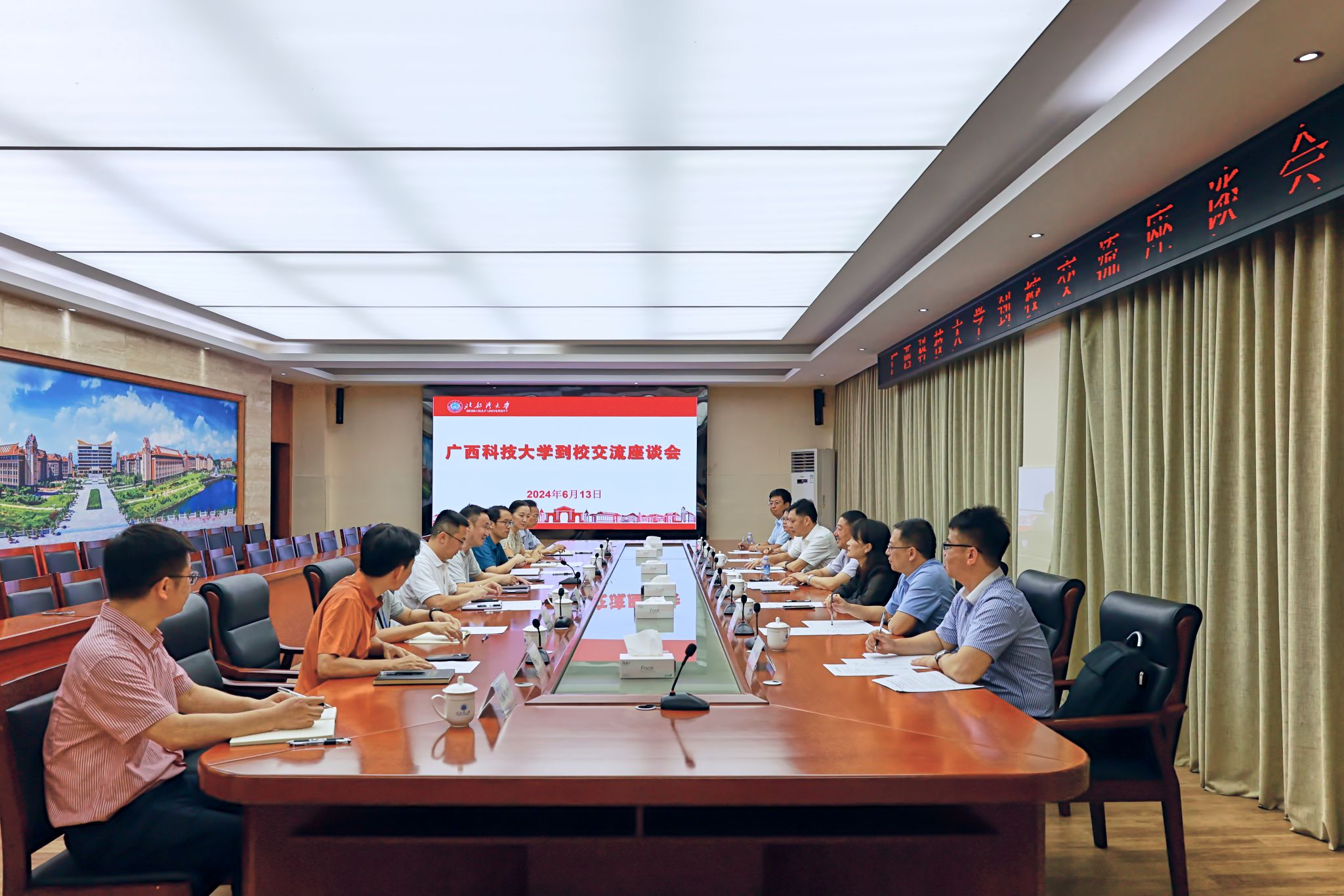 6月13日,广西科技大学党委副书记、校长刘宝臣,校党委常委、副校长邓朗妮等一行7人来校访问,并在办公楼523会议室举行座谈交流会。学校党委副书记、校长苗剑,校党委副书记陈磊,副校长尹艳镇出席座谈会。座谈会前,学校党委书记徐华蕊会见了刘宝臣一行并进行亲切交流,双方都表达了希望两校今后在学科建设、科学研究等多领域加强沟通交流的愿望。座谈会上,苗剑对广科大一直以来给予学校的大力支持和帮助表示衷心感谢。他表示,学校正处在快速发展阶段,...