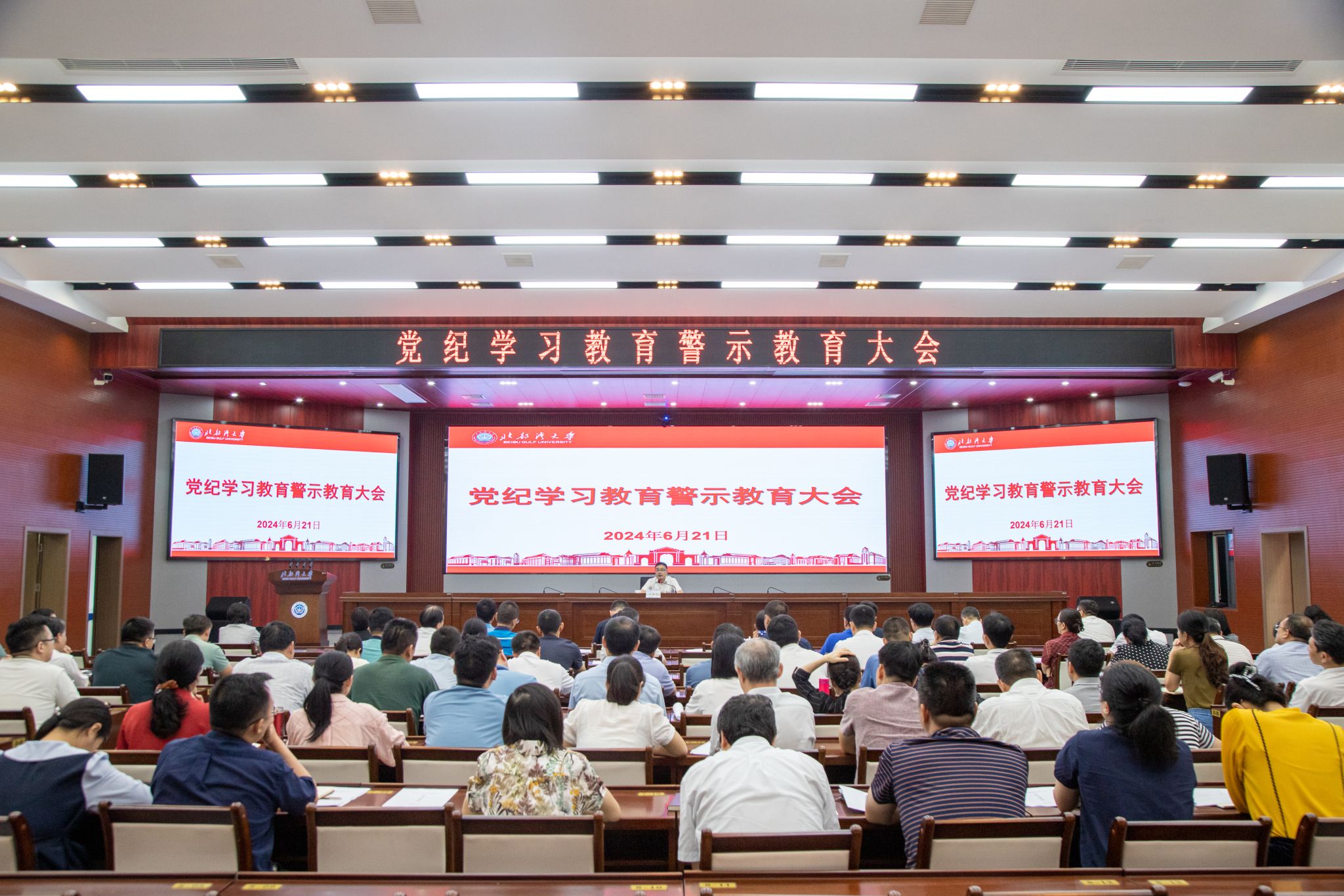 6月21日,学校党纪学习教育警示教育会在办公楼一楼报告厅召开。会议深入学习贯彻习近平总书记关于全面加强党的纪律建设的重要论述,观看警示教育片《严守政治纪律》,通报违纪违法典型案例,教育引导党员领导干部加强党纪学习,深入检视剖析,深刻汲取教训,做到心有所畏、言有所戒、行有所止。校党委书记徐华蕊就进一步加强党的纪律建设,推动全面从严治党向纵深发展,更好开展党纪学习教育做指示。徐华蕊指出,学校党员干部要深入学习贯彻习近平总书记关于全面加强党的纪律建设的重要论述和关于党纪学习教育的重要讲话重要指示精神,...