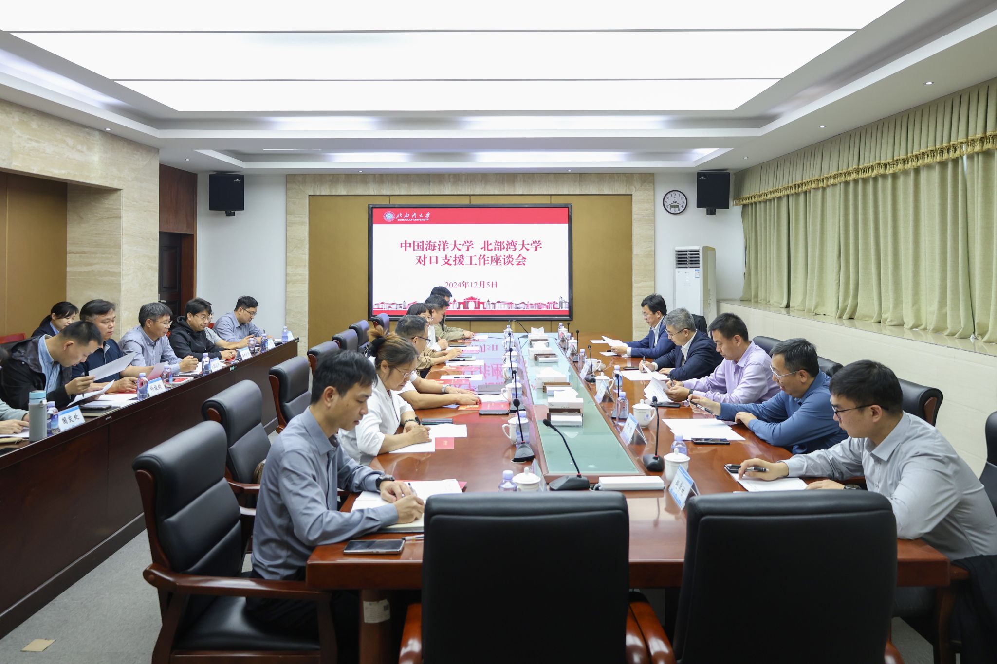 12月5日,中国海洋大学党委常委、副校长刘勇一行到校推进对口支援工作。校党委副书记、校长苗剑,校党委常委、副校长陆衡出席座谈会。校党委常委、副校长马秀明主持。苗剑对中国海洋大学多年来给予学校的大力支持和帮助表示衷心感谢。他表示,学校将利用区位和资源优势,充分发挥对口支援平台作用,在人才培养、科学研究、平台共建等方面加强交流协作,把对口支援工作做深做实,推动学校高质量发展,共同为广西向海经济高质量发展贡献力量。...