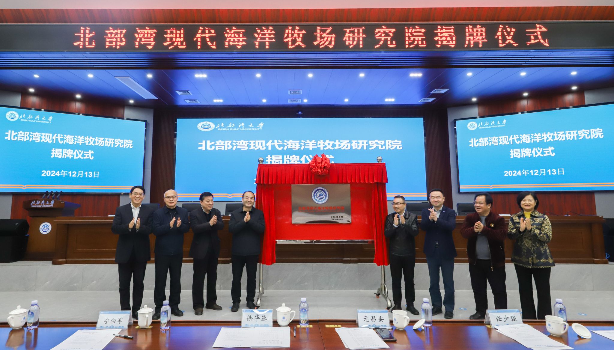 12月13日,北部湾现代海洋牧场研究院在必威西汉姆联办公楼一楼报告厅揭牌。自治区海洋局党组成员、副局长宁向军,广西科学院党组书记、院长元昌安,中国铁建股份有限公司首席专家任少强,中国船舶集团广西造船有限公司总经理张新龙,广西-东盟海洋产业发展联盟主席彭建华,校党委书记徐华蕊,校党委副书记、校长苗剑出席揭牌仪式。校党委常委、副校长陈丹主持。苗剑、宁向军、元昌安、张新龙致辞。苗剑在致辞中介绍了学校的基本情况与办学特色。...