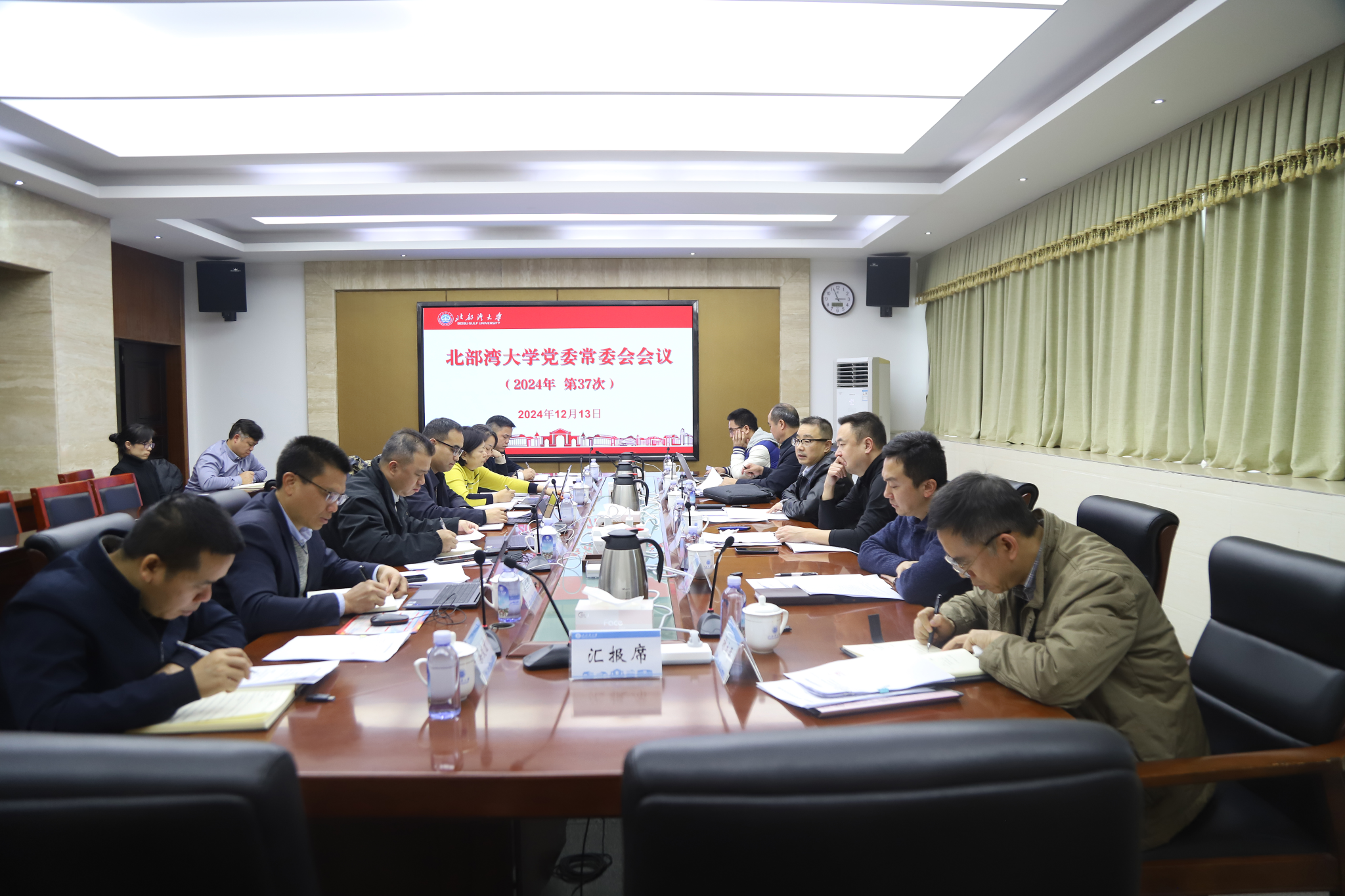 12月26日,学校在办公楼327会议室召开党委常委会,传达学习习近平总书记近期重要讲话重要指示精神。校党委书记徐华蕊主持会议并领学。相关职能部门负责人列席会议。会议强调,要深入学习贯彻习近平总书记在庆祝澳门回归祖国25周年大会暨澳门特别行政区第六届政府就职典礼和在澳门视察时的重要讲话精神,将之与学习贯彻习近平总书记关于广西工作论述的重要要求结合起来,围绕建设海洋强国和广西“一区两地一园一通道”建设,聚焦人才培养中心工作,...