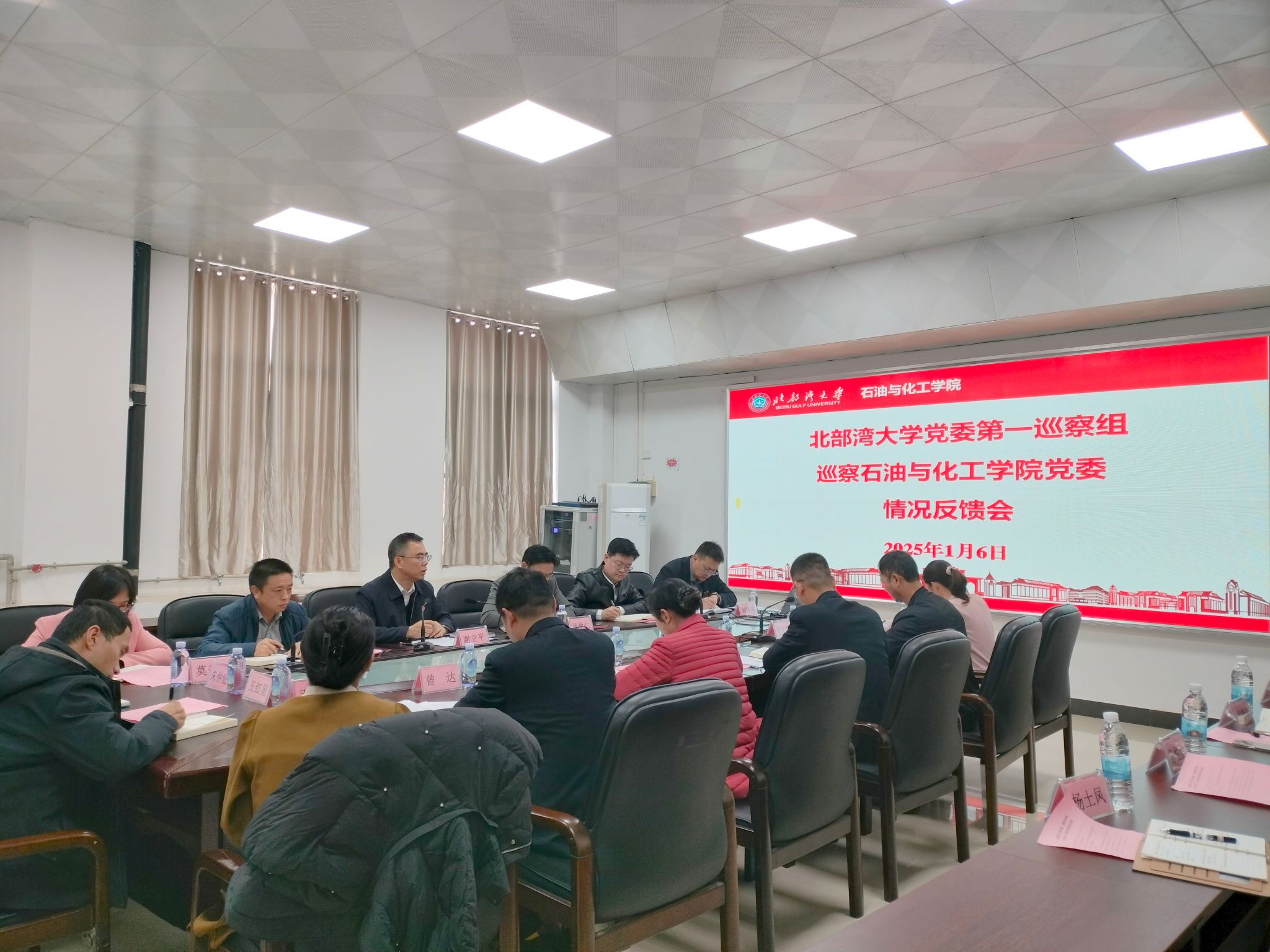 1月6日,学校在办公楼327会议室召开党委常委会,学习习近平总书记二〇二五年新年贺词。校党委书记徐华蕊主持会议并领学。相关职能部门负责人列席会议。会议指出,要深入学习贯彻习近平总书记新年贺词精神,汲取奋进力量,当好高质量发展“主角”,锚定建设海洋特色鲜明的高水平应用型大学的目标,强化“海洋性、应用型、国际化”办学特色,绘就学校高质量发展新画卷,解放思想、创新求变,向海图强、开放发展,为奋力谱写中国式现代化广西篇章贡献湾大力量。...
