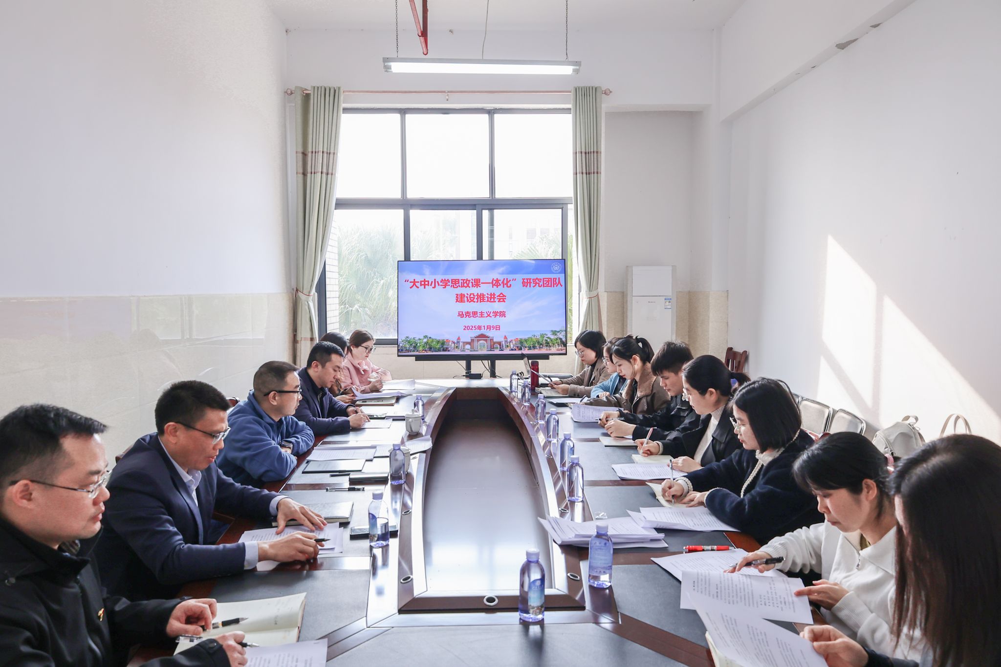 1月9日下午,学校在马克思主义学院217会议室召开“大中小学思政课一体化”项目建设推进会。校党委书记徐华蕊主持会议,校党委副书记陈磊,校党委常委、宣传部部长、马克思主义学院党委书记(兼)裴以明,马克思主义学院相关教师参加会议。徐华蕊听取了裴以明对项目建设设想及实施方案的介绍。他强调,要深入贯彻落实习近平总书记关于教育的重要论述以及习近平总书记在学校思想政治理论课教师座谈会上的重要讲话精神,认真学习贯彻习近平总书记关于学校思政课建设的重要指示精神,...