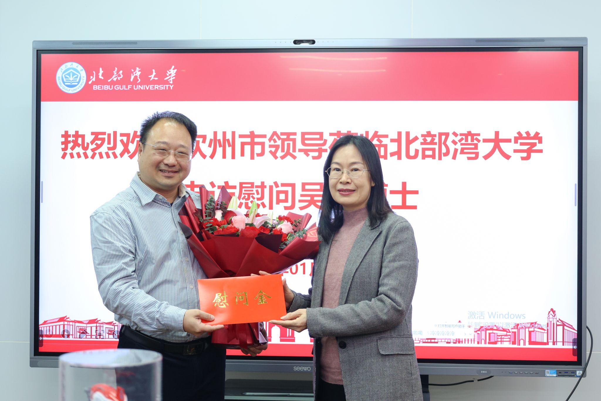 近日,钦州市委常委、市纪委书记、市监委主任王芳,钦州市人大常委会副主任沈小军,钦州市副市长王文泽分别到校走访慰问机械与船舶海洋工程学院吴宁博士、海洋学院陈健安博士、研究生院院长许尤厚教授,为他们送上党和政府的关怀与温暖,并致以诚挚问候和新春祝福。校党委副书记陈磊,校党委常委、副校长闫松银参加慰问。慰问中,市领导详细了解了教师们的工作、生活及科研情况,听取了师资队伍建设、学科专业建设、科学研究、人才培养等方面的介绍。...