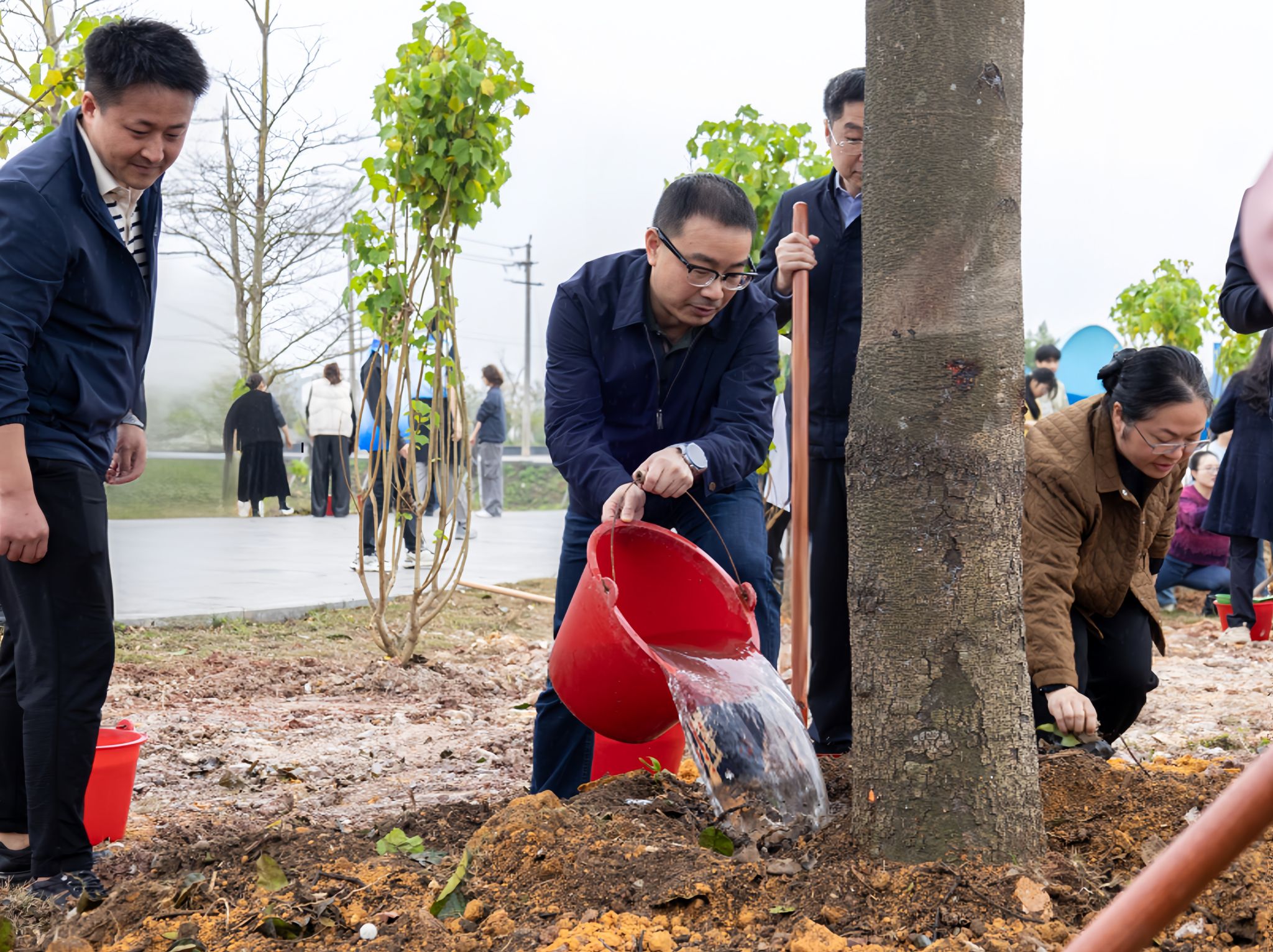 春光作序,新绿润起。3月12日,正值第47个中国植树节,校领导徐华蕊、苗剑、唐高华、梁智、陆衡、马秀明、陈丹、闫松银,与中国农业银行钦州分行党委书记、行长韦翰华等一行,以及师生代表200余人一同参与“植此青绿·共筑未来”植树节活动。在学校东区篮球场北面水系沿线,一派积极忙碌的劳动景象。师生和来宾们热情高涨、干劲十足,挥锹培土、扶苗压实、围堰浇水,现场分工明确,有条不紊,各个环节衔接有序、配合默契,用实际行动践行着“...