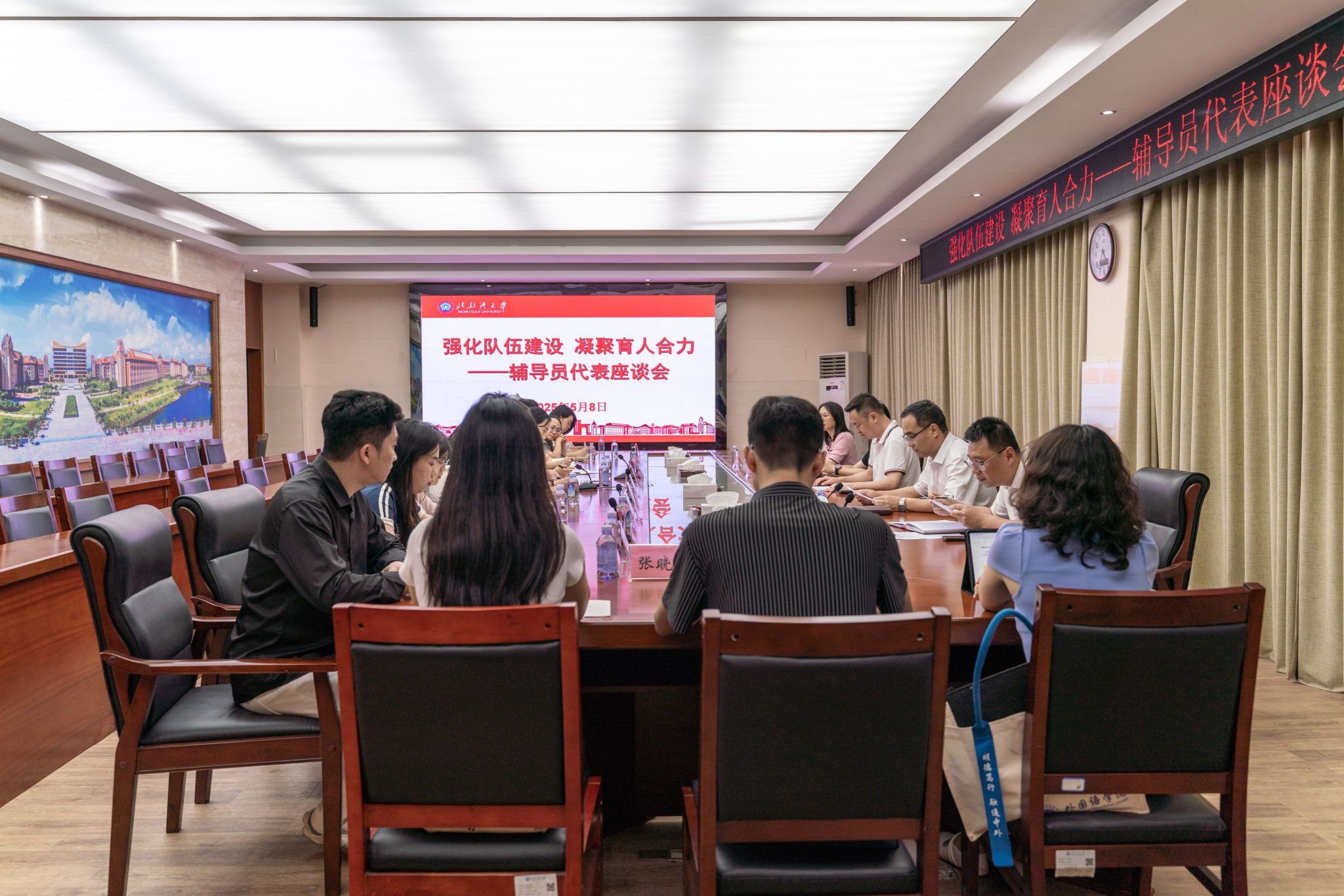 5月8日,学校在办公楼523会议室召开“强化队伍建设 凝聚育人合力”辅导员座谈会。校党委副书记、校长苗剑出席会议并讲话。校党委常委、副校长马秀明主持会议。各学院辅导员代表参会会上,刘海涛、王炳、欧梦茵、曹桂磊、庞悦、詹瑞虹、尹秋凤等辅导员代表依次发言,主要聚焦当前工作中存在的难点、痛点,围绕辅导员职业发展路径、学生思政教育方式创新、协同育人机制完善等有关辅导员队伍建设与学生工作高质量发展的议题展开了深入交流与探讨。...