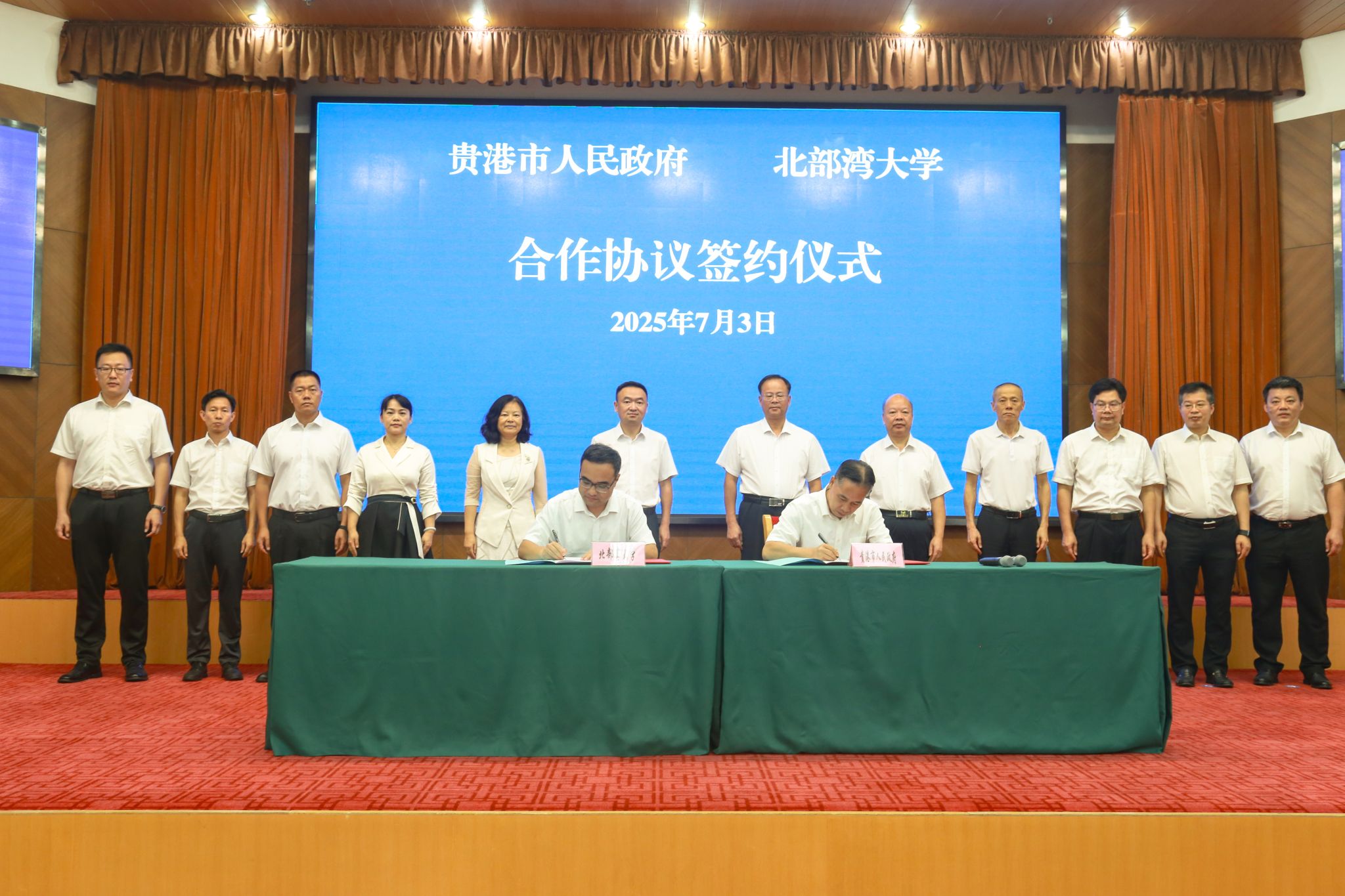 7月3日,学校与贵港市人民政府在贵港市会议中心签署合作协议,开展支持广西贵港工业学院(暂名)申报本科办学以及平陆运河经济带建设等相关合作。校党委副书记、校长苗剑和贵港市委副书记、市长林海波见证签约仪式。校党委常委、副校长马秀明与贵港市副市长周仕志代表双方签订了合作协议。签约仪式前,双方就合作事宜进行了务实沟通交流。校党委常委、副校长陈丹,校长助理周丽娟,党校办、教务处、科技处主要负责人以及贵港市政协副主席、...