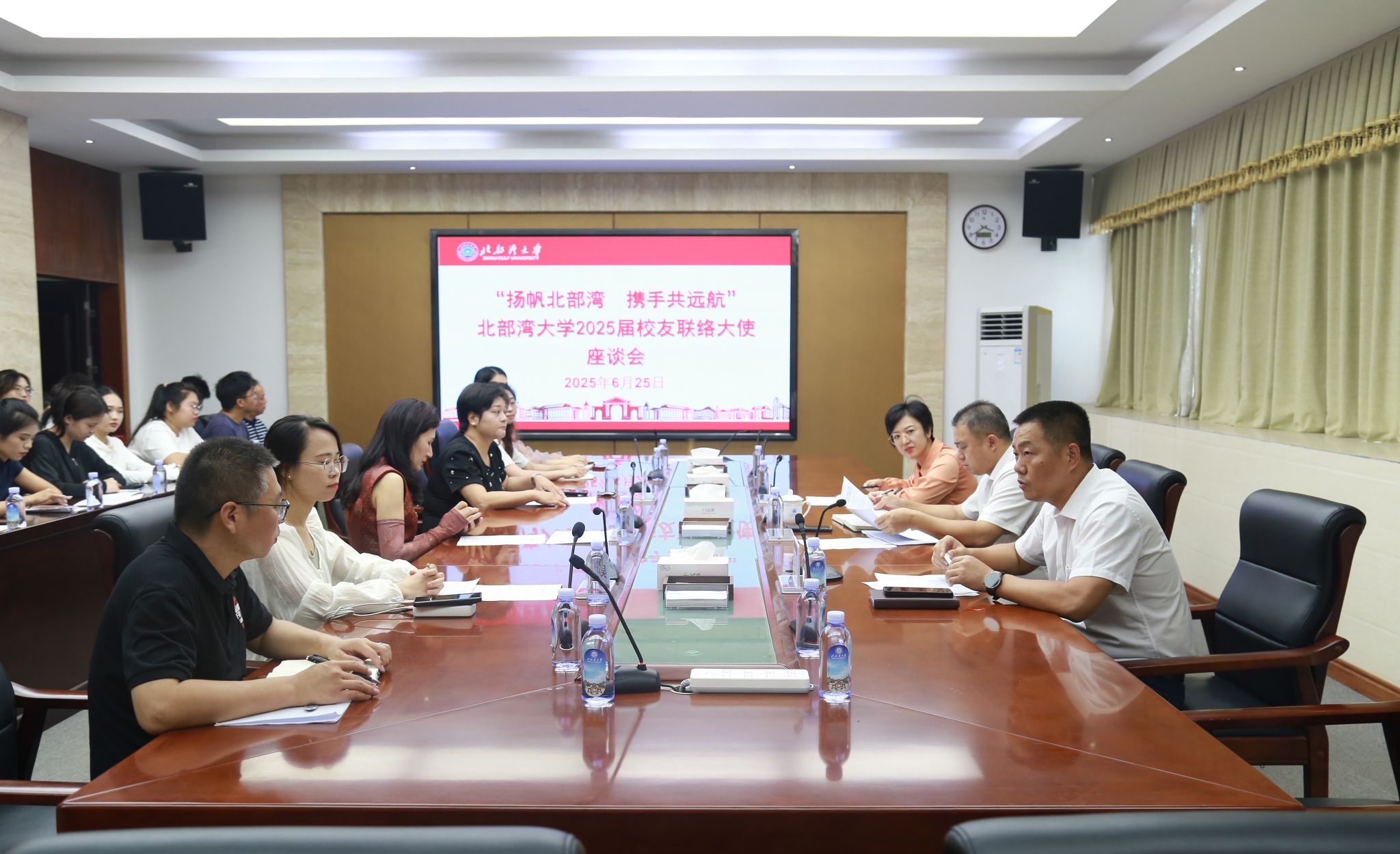 6月26日,bw必威西汉姆联官方网站2025届“扬帆北部湾 携手共远航”校友联络大使代表座谈会在办公楼327会议室举行。校党委常委、副校长闫松银出席会议并讲话。校友办、各学院校友工作负责同志、学校校友会校友之家校友代表、2025届校友联络大使代表参会。闫松银代表学校向获聘的校友联络大使表示祝贺与感谢。他说,校友与母校是“同根同源”的血脉联结,希望校友联络大使秉承“博观内省,达道知行”的校训精神,讲好湾大故事;勇担时代重任,发挥专业优势,...