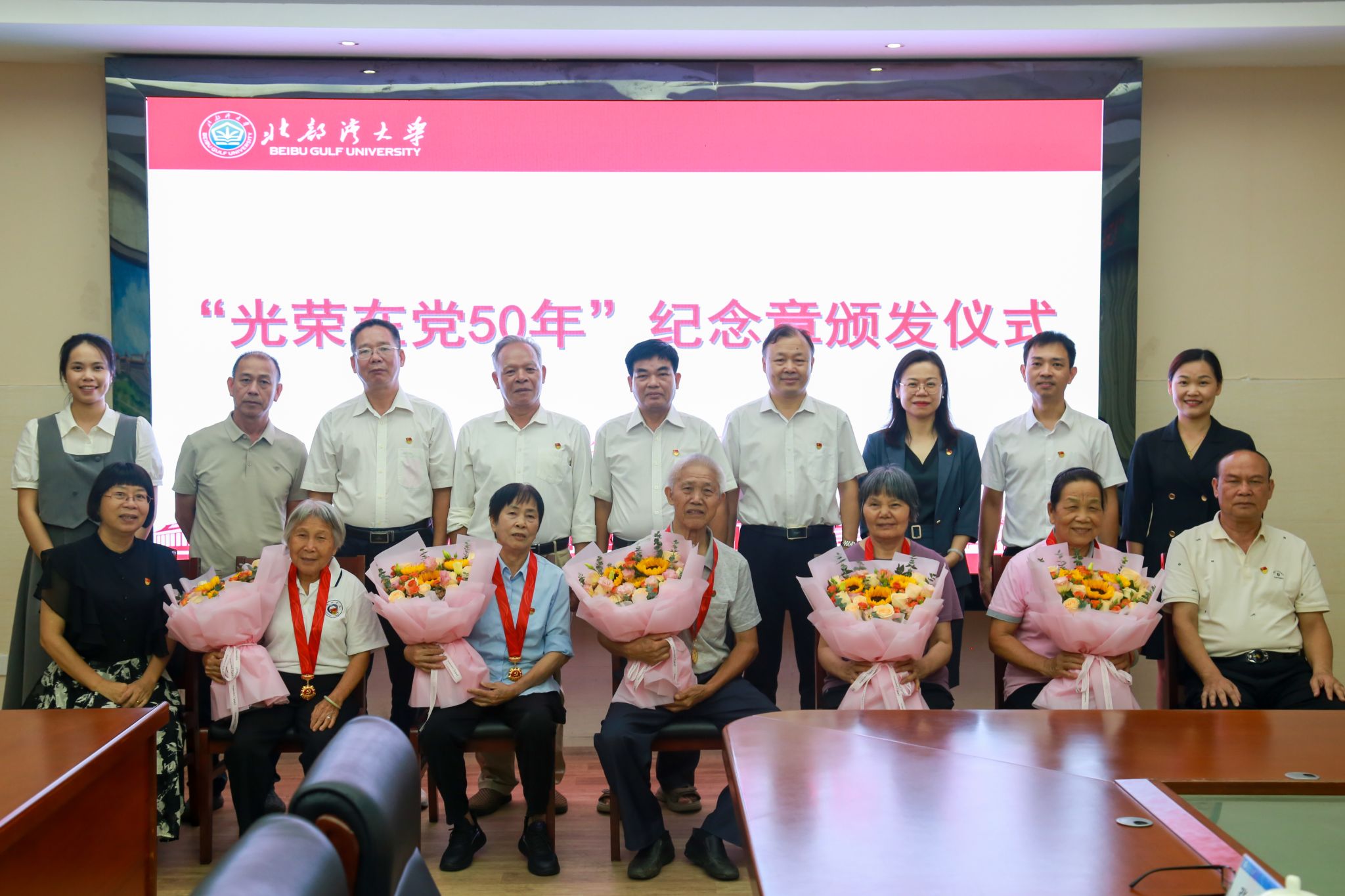 薪火相传守初心,红心向党写忠诚。6月27日,学校在办公楼523会议室举行“光荣在党50年”纪念章颁发仪式。校党委常委、副校长陆衡出席活动,为8位“光荣在党50年”老党员逐一佩戴纪念章并致以亲切慰问。党委组织部、人事处(离退休工作处)相关负责人、退休教职工党委委员参加活动。纪念章获得者代表尤仕凤和退休教职工党委委员林加全先后发言。他们结合个人经历,深情回顾了与党同心、与校同行的几十载春秋岁月和奋斗历程,表示将继续发挥余热,...
