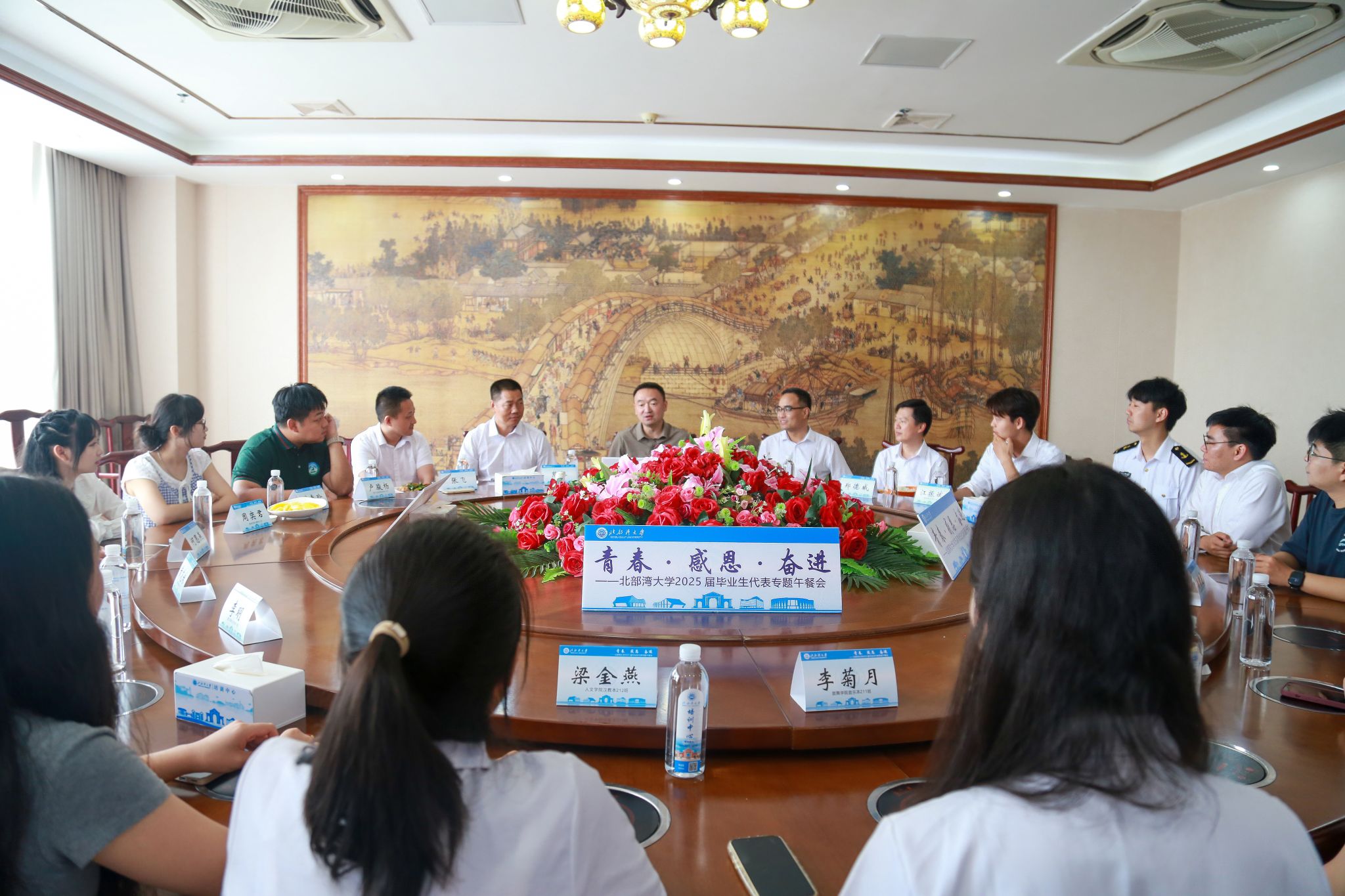 6月26日中午,“青春·感恩·奋进——2025届毕业生代表专题午餐会”在学校国际交流中心温情举办。校党委副书记、校长苗剑与2025届毕业生代表围桌而坐,共话成长感悟,寄语青春理想。校党委常委、副校长马秀明主持午餐会。苗剑与毕业生代表们围坐共餐,亲切询问每位学子的家庭状况、求学历程以及毕业后的职业规划。在轻松愉悦的氛围中,毕业生们纷纷打开了话匣子。来自海洋学院水产本213班江振斌同学分享了成功考取了中山大学研究生的奋斗历程,...