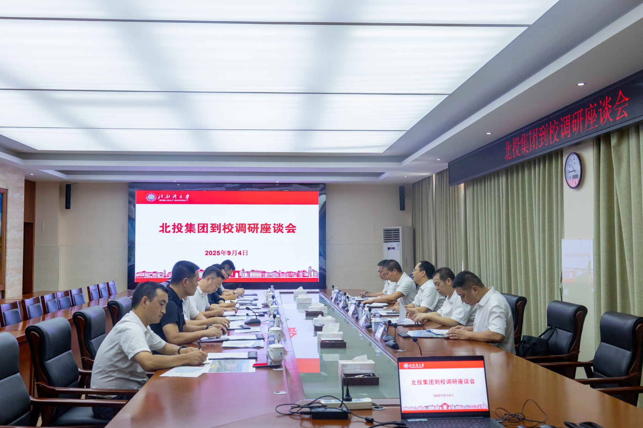 9月4日,广西北部湾投资集团副总经理刘奕一行来校调研。校党委副书记、校长苗剑,校党委常委、副校长陈丹、闫松银在办公楼523会议室与刘奕一行座谈交流。苗剑对刘奕一行来访表示热烈欢迎,介绍了学校在学科建设、应用型人才培养及服务区域经济社会发展等方面的成果。他表示,学校坚持立足北部湾区域,积极推进产教融合、校地协同,希望进一步加强与广西北部湾投资集团有限公司在人才培养、科学研究、基础设施建设等领域的合作,为北部湾区域发展提供坚实的人才支撑和技术支持。...