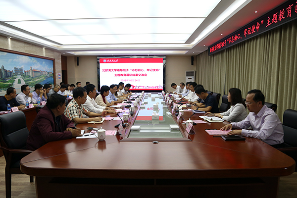 10月24日下午,学校召开校级领导班子“不忘初心、牢记使命”主题教育调研成果交流会。自治区党委主题办第七巡回指导组督导员罗国斌、陈敏出席会议,学校全体学校领导参加会议。学校党委书记赵君主持会议。会上,赵君书记通报校级党员领导开展“不忘初心、牢记使命"主题教育调研情况。随后,校极党员领导逐一对照初心使命,围绕思政课师资队伍建设、行政作风建设、后勤管理与服务信息化建设、勤俭治校等主题交流调研成果,全面查找问题,...