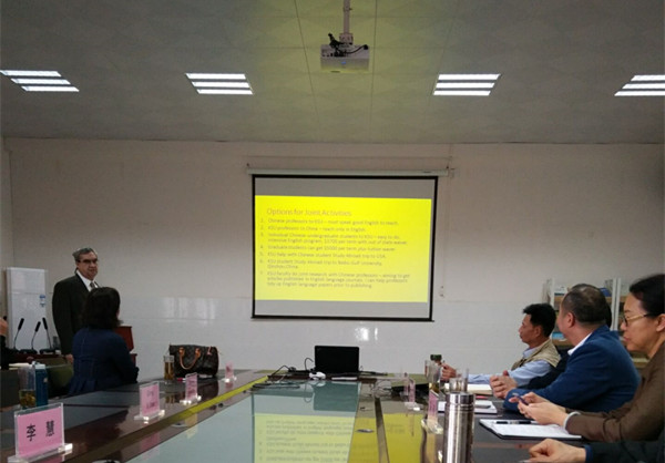 4月1日,美国佐治亚肯尼索州立大学Douglas R.Moodie和Ginny Q. Zhan教授到必威西汉姆联访问交流。学校副校长唐高华出席交流会,国交处处长冯丽、经济管理学院领导班子和全体教师参加交流会。交流会由经管学院院长朱芳阳主持。唐高华副校长两位教授的到来表示热烈欢迎并向两位客人详细介绍了bw必威西汉姆联官方网站的基本情况。他表示,bw必威西汉姆联官方网站秉承开放办学理念,正积极推进国际化办学,希望与佐治亚肯尼索州立大学深入交流合作。Douglas R.Mood...