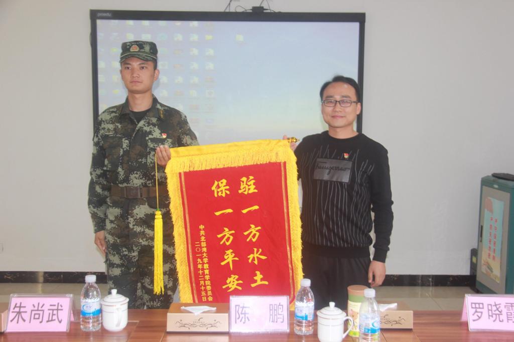 为扎实开展“不忘初心、牢记使命”主题教育,深入推进“榜样”示范作用。12月15日上午,教育学院学生第一、第二党支部赴武警广西总队钦州支队某中队开展“传承红色基因,践行大学生党员使命”主题党日活动,学院党委副书记陈鹏、学生第一党支部书记罗晓霞、学生第二党支部书记陈婧、教师李淑波带队前往,学生第一、第二党支部全体党员参加了此次活动。活动分为四项议程。在中队战士的组织带领下,党员们首先来到攀登楼前,观看...