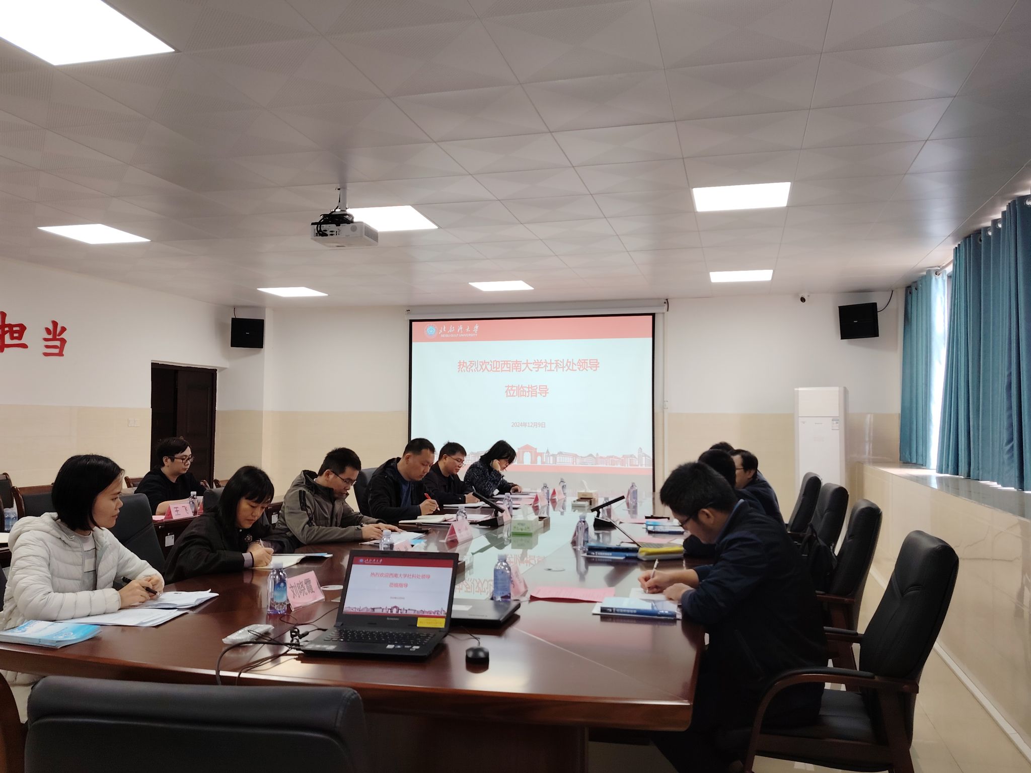 12月9日上午,西南大学社会科学处副处长刘新智、陆海新通道与区域研究中心主任宗会明一行来校调研交流。经济管理学院院长朱念、人文学院副院长侯艳、钦州发展研究院副院长黄孙庆参加座谈。科技处副处长郭哲主持。与会人员围绕“陆海新通道”及人文社科平台建设等方面开展深入交流讨论。双方一致表示将以此次调研为契机,推进双方深入交流,开展多领域深层次合作,推动两校办学水平再上台阶。西南大学社会科学处、陆海新通道与区域研究中心,...