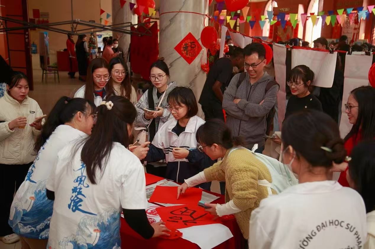 1月12日至18日,学校外国语学院师生赴越南太原师范大学,参加2025年越南语言与文化冬令营。此次活动由外国语学院副院长蔡成龙、非通用语教研室主任颜彦带队,12名英语专业学生参加,与越南师生共同度过了丰富多彩的交流时光。在1月13日的开营仪式上,越南太原师范大学副校长徐光新表示,冬令营不仅是两校深化合作的重要契机,更为两国文化交流注入了新动力。蔡成龙对越南师生的精心筹备和热情接待表示感谢,希望学生们通过活动深入感受越南文化、...