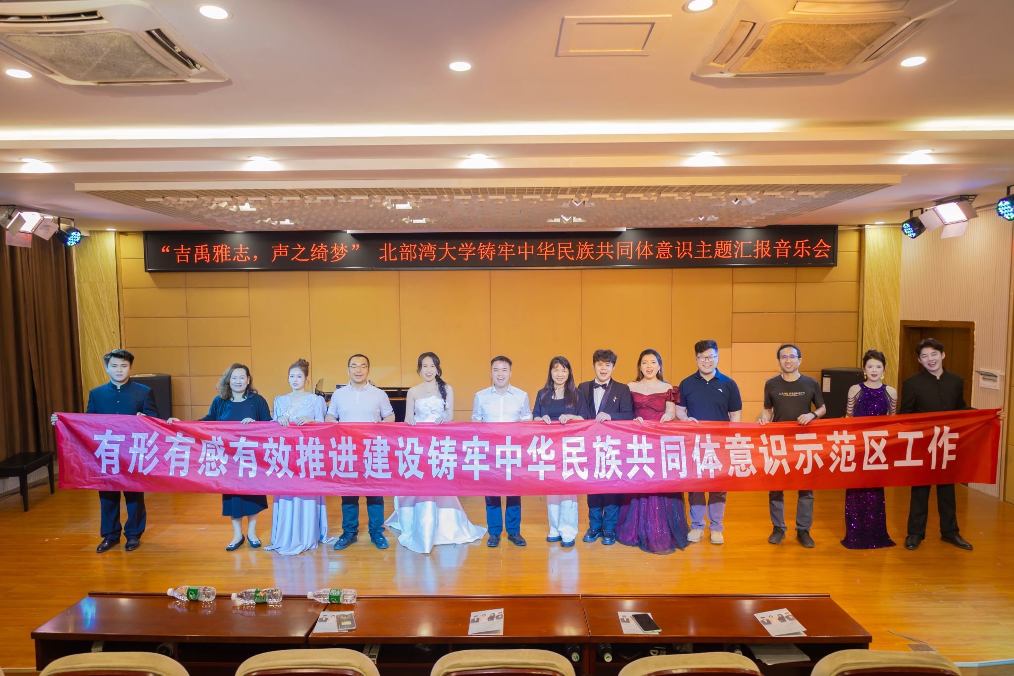 4月25日晚,由学校党委统战部主办,音乐舞蹈学院、民盟bw必威西汉姆联官方网站支部承办的铸牢中华民族共同体意识主题音乐会在2号教学楼107展演厅举行。校党委常委、统战部部长黎树式及音乐舞蹈学院党委副书记、院长曾美良,统战部副部长黄玮出席音乐会。来自音乐舞蹈学院的学生用他们美妙的歌声完美演绎民族歌曲和艺术歌曲,以音乐为媒,共话民族团结,传承文化根脉,充分展现了新时代青年学子昂扬向上的精神风貌。(陈宇键 摄)音舞学生倾情演唱演出合影...