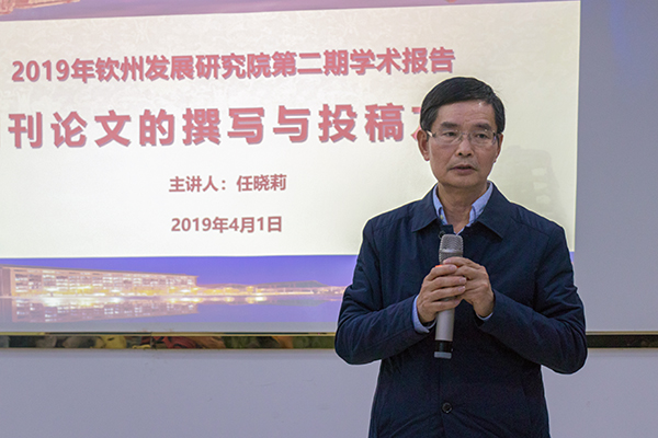 4月1日,钦州发展研究院2019年第二期学术报告在图书馆八楼博士沙龙室举行。学校党委副书记、钦州发展研究院院长陈锦山出席报告会,钦州发展研究院研究员、学校有关部门代表以及二级学院的师生代表参加报告。钦州发展研究院常务副院长傅远佳主持本场报告。