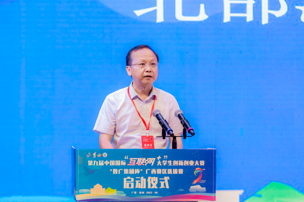 校党委书记韩峻峰在致辞中指出,今年正值学校建校50周年暨举办师范教育117周年,学校始终把人才培养作为首要任务,坚守为党育人、为国育才初心,深入贯彻落实国家、自治区关于促进创新创业的决策部署,坚持创新引领创业、创业带动就业,建立创新创业实践基地5个,并被教育部认定为“国家级科技特派员创业培训基地”,成为自治区级创新创业教育实践基地建设单位,形成具有地方院校特色的创新创业教育体系。他表示,湾大将以此次大赛为契机,在主办单位的指导下,引领广大青年学子扎根八桂大地,用创新创业成果服务社会,助力壮美广西高质量建设,早日共圆复兴梦想。