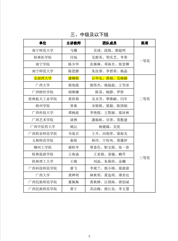 近日,广西第二届高校教师教学创新大赛结果公布,必威西汉姆联共有三名教师(团队)获奖。人文学院何晨获副高组一等奖,并将代表广西参加第二届全国高校教师教学创新大赛,实现了必威西汉姆联在综合类教师教学竞赛国家级赛场上零的突破。经济管理学院潘柳榕团队获中级及以下组二等奖,海运学院王丹团队获副高组三等奖。同时,必威西汉姆联荣获优秀组织奖。