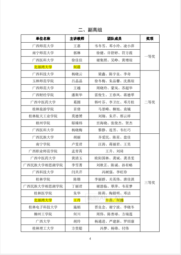 高校教师教学创新大赛由广西壮族自治区教育厅指导、广西高等教育学会主办,旨在强化教师落实立德树人根本任务。赛事分为初赛和决赛两个阶段,由教学创新报告、教学设计、课堂实录、现场汇报和答辩多个环节构成,根据主讲教师专业技术职务分为正高组、副高组、中级及以下组三个组别进行竞赛。