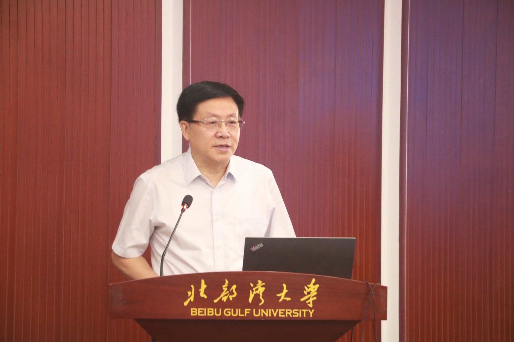 在主旨报告阶段,围绕“向海经济的绿色发展——理念、路径、方法”的主题,专家学者们分别从构建向海经济发展新格局、海洋经济的协同发展、钦州港自贸片区绿色低碳发展路径、排污权交易制度改革四个角度分享了各自的主要研究成果,共同研讨了向海经济可持续发展和海洋生态经济健康发展。(周晟旻 罗惠榕 罗钧升 廖泽湖 卢子旺 摄)