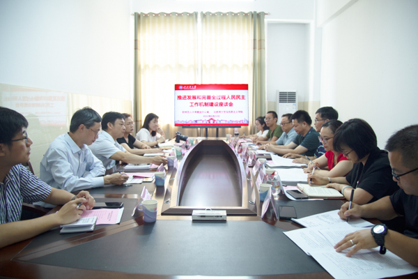 市人大常委会研究室主任冯国旭,马克思主义学院党总支书记、院长官秀成,马克思主义学院教师代表参加了座谈会。(韦鸥耘 黄俨云 摄)