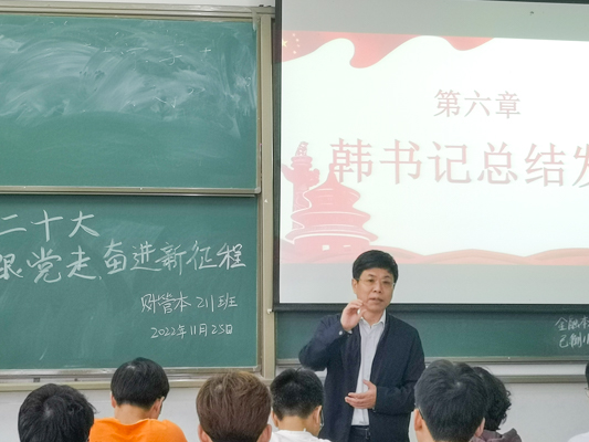韩峻峰勉励同学们要坚定理想信念,志存高远,脚踏实地,学习中国共产党面对困难攻坚克难、一往无前的奋斗精神,打牢专业基本功,提高自身素质,练就过硬本领;要紧紧跟随党的步伐,不忘为中华民族崛起而读书的初心,将“小我”融入“大我”,为党和国家的事业贡献青春力量。