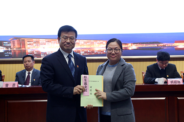 会上,各二级单位代表依次向赵君书记递交2019年就业工作责任书。