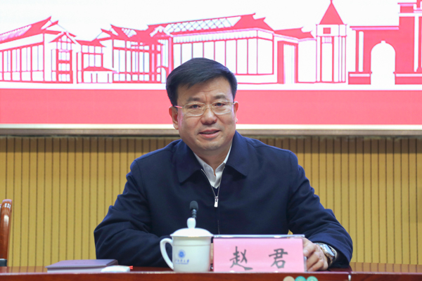 赵君表示,完全拥护并坚决服从自治区的决定。他回顾了筹建大学的历程与学校的发展成就,对广大教职员工的无私奉献和团结拼搏表示感谢。赵君说,“七年钦州行,一生湾大情”。在钦七年,是倾力奔跑、备受感动、一生难忘的七年,寄托了梦想与追求,也收获了“敢于向困难说不,敢于挑战不可能,敢于自我革新”的湾大精神特质。他相信,在自治区党委和政府的坚强领导下,有以韩峻峰同志为班长,林基明同志为校长的学校领导班子的正确带领,有全校干部职工的共同努力,学校事业定会再谱新篇章、再创新辉煌。
