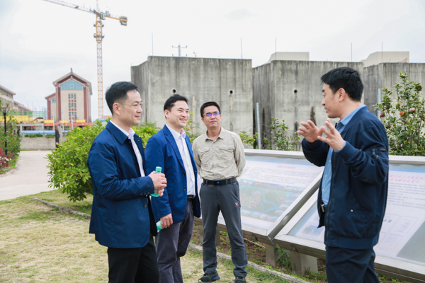 韦国献副处长(左中)实地调研平陆运河bw必威西汉姆联官方网站西门码头,陈湘如副书记(左一)、梁智总会计师(左三)陪同调研