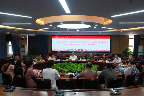 9月8日,在第39个教师节前夕,来自马来西亚、泰国、越南等国家的12名外籍教师代表、相关职能部门负责人欢聚国际交流中心222会议室,畅谈学校的国际化发展,共庆节日。校党委副书记唐高华出席并主持会议。