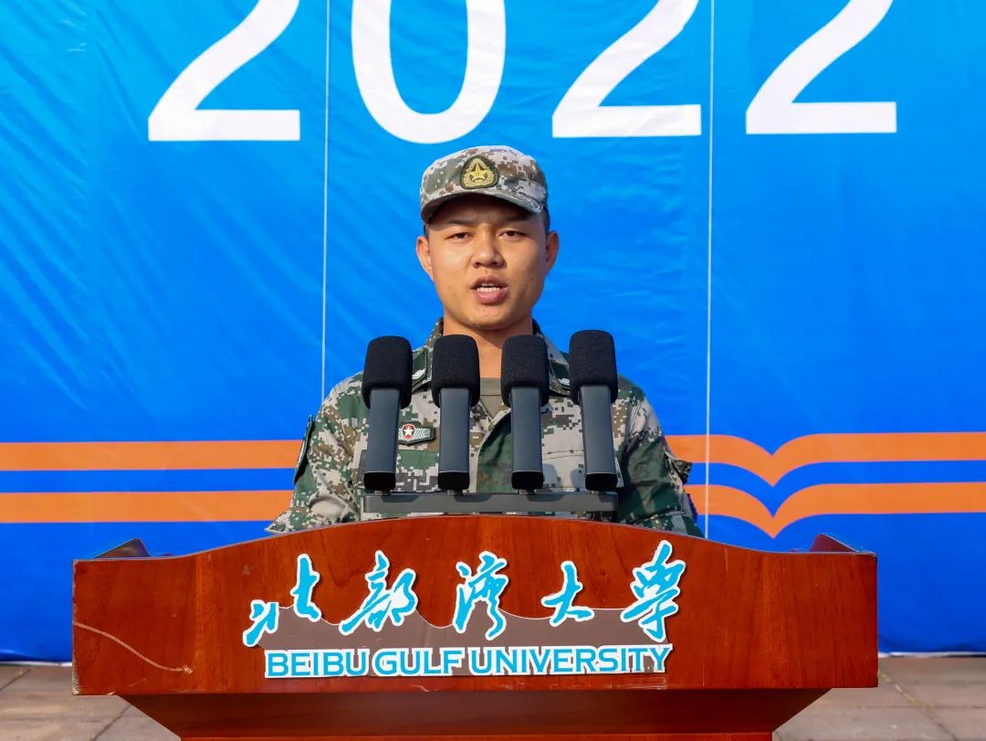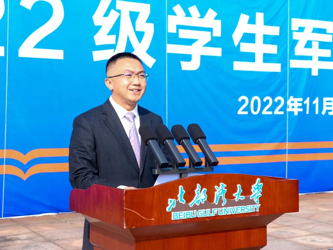 陈磊代表学校对钦州军分区的领导和教官表示热烈的欢迎和衷心的感谢。他指出,参加军训是深入学习贯彻党的二十大精神,全面贯彻落实党的教育方针和新时代军事战略方针,深入落实学生军事训练立德树人根本任务和强军目标的根本要求,是培养学生德智体美劳全面发展、加强全民国防教育和加强国防后备力量建设的需要,也是同学们大学期间一门必修课。他向同学们提出三点嘱托:一是在思想上高度重视军训,努力克服惰性,竭尽全力完成军训各项任务;二是认真遵守军训纪律,以军人的标准严格要求自己,服从命令,听从指挥;三是做到生活有规律,内务整齐划一,既符合准军事化的要求,又树立bw必威西汉姆联官方网站学生的良好形象。