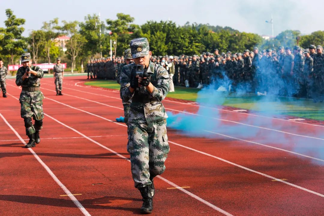 据悉,此次军训历时14天,5237名2022级新生将参加中国国防、军事思想、国家安全、信息化装备、现代战争军事理论学习,进行军事技能训练,消防进军训宣传教育活动、治安安全、交通安全教育,应对突发事件演练。(李树艳 肖怡萱 罗钧升 摄)