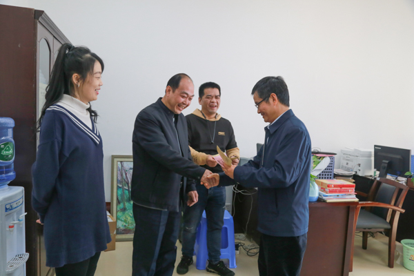陈锦山为办公楼值守人员送上慰问金