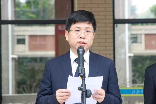 党校办、党委宣传部、党委学生工作部(处)、教务处、科技处、发展规划处、人事处等职能部门负责人与体育学院全体教职工共同见证了揭牌的重要时刻。(周晟旻 摄)