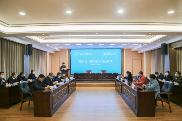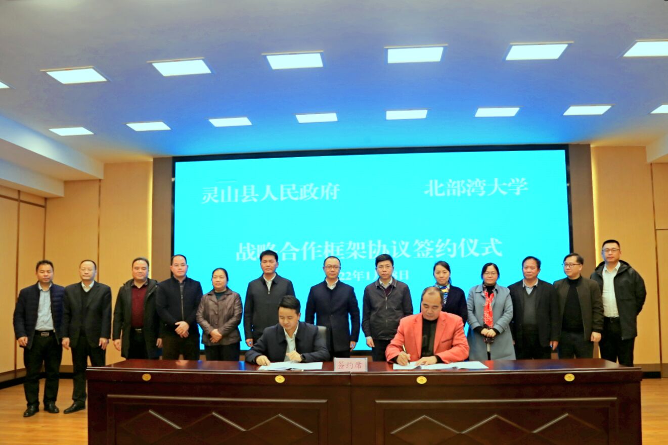 1月18日下午,学校与灵山县人民政府战略合作框架协议签订仪式在灵山县人民政府会议室举行。校党委书记韩峻峰,灵山县委书记赵文博出席并见证签订仪式。校党委常委、副校长唐高华,灵山县委副书记、县长张海兵分别代表双方签约。