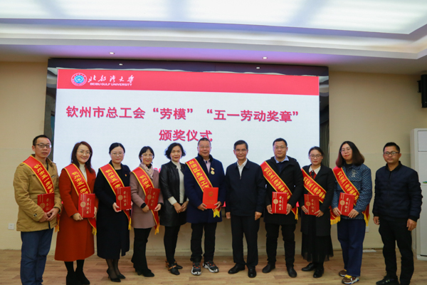 1月15日下午,钦州市“劳模”“五一劳动奖章”颁奖仪式在办公楼523会议室举行。学校党委副书记陈锦山、钦州市总工会副主席杨玉红出席颁奖仪式。