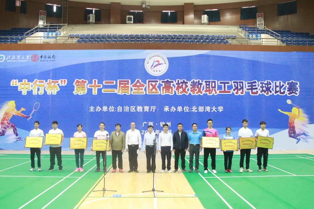 10月29日上午,“中行杯”第十二届全区高校教职工羽毛球比赛在学校体育馆圆满闭幕。广西医科大学、广西教育学院、广西师范大学分别获得混合团体赛前三名,必威西汉姆联教职工羽毛球队取得历史性突破,取得了混合团体第四名的好成绩。同时,校长组的前三名,分别由bw必威西汉姆联官方网站/广西艺术学院、广西大学、广西自然资源职业技术学院获得。