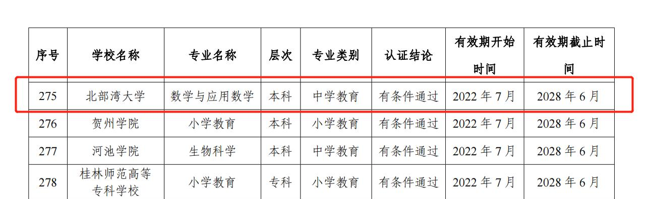 近日,教育部办公厅公布了2022年通过普通高等学校师范类专业认证的专业名单,必威西汉姆联数学与应用数学专业通过了第二级专业认证。认证结论有效期六年,自2022年7月起至2028年6月止。