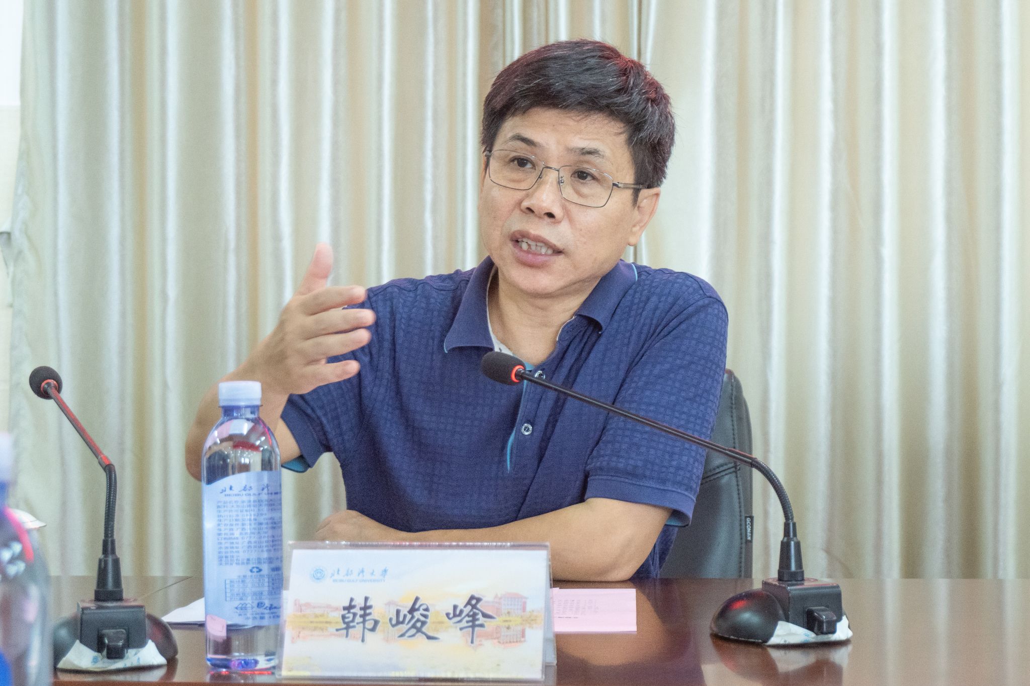 韩峻峰认真倾听与会学生代表个人成长经历和入学感悟的分享,并对同学们刻苦学习的精神给予了充分肯定。他指出,学校历来都高度重视家庭经济困难学生的资助工作,全面落实党和国家的学生资助政策,坚持精准资助和资助育人。他希望各位同学放下“经济包袱”和“思想包袱”,秉持“敢于挑战不可能、敢于向困难说不、敢于自我革新”的湾大精神特质,用阳光向上的心态正视困难,以坚定不移的信念面对未来,在今后的学习和工作中,坚定正确的价值观,不断凸显生命的底色、亮色,绽放出绚丽的青春之花。