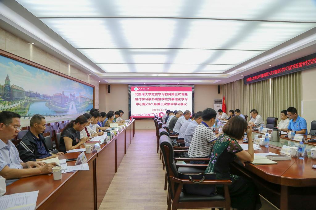 5月21日下午,党史学习教育第三次专题研讨学习读书班暨学校党委理论学习中心组2021年第三次集中学习会议在办公楼523会议室召开。自治区党委党史学习教育第十五巡回指导组组长、桂林电子科技大学原党委书记周怀营一行3人巡听旁听必威西汉姆联党委理论学习中心组学习会议。会议由学校党委书记韩峻峰主持。