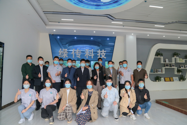 在绿传科技与企业合影